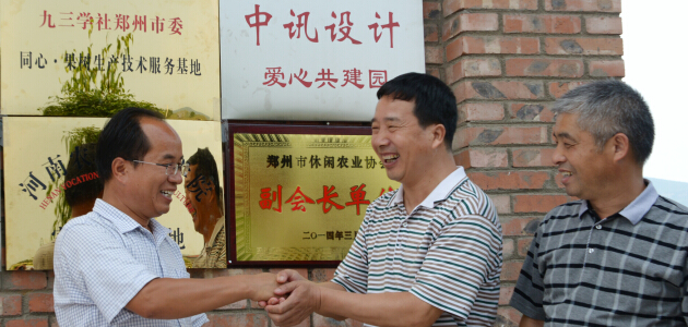 8月13日,九三學(xué)社鄭州市委在登封市唐莊鄉(xiāng)舉行同心·果樹(shù)生產(chǎn)技術(shù)服務(wù)基地揭牌儀式。社市委委員、社市委農(nóng)業(yè)委員會(huì)、科技委員會(huì)、人資委員會(huì)、管城基層委員會(huì)等骨干社員、社市委果樹(shù)生產(chǎn)技術(shù)服務(wù)團(tuán)成員、河南省雅新園藝公司職工40多人參加活動(dòng),社市委副主委鄭高飛、劉崇懷、河南省雅新園藝公司總經(jīng)理鄭豐聲出席儀式并揭牌。
