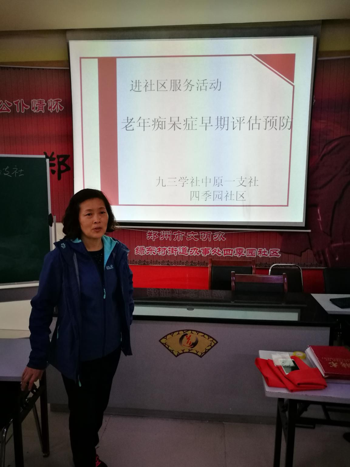 11月30日,九三學(xué)社鄭州市中原一支社走進(jìn)中原區(qū)綠東村街道四季園社區(qū)開展社會(huì)服務(wù)活動(dòng)。九三學(xué)社社員宋麗雅應(yīng)邀為社區(qū)居民做了“老年癡呆癥早期評(píng)估預(yù)防”的專題講座。宋麗雅結(jié)合自己工作經(jīng)驗(yàn),詳細(xì)講解了如何盡早發(fā)現(xiàn)癥狀、如何評(píng)估,如何從飲食上、運(yùn)動(dòng)上、生活上做好防治,現(xiàn)場解答了居民的問題,得到了居民的好評(píng)。