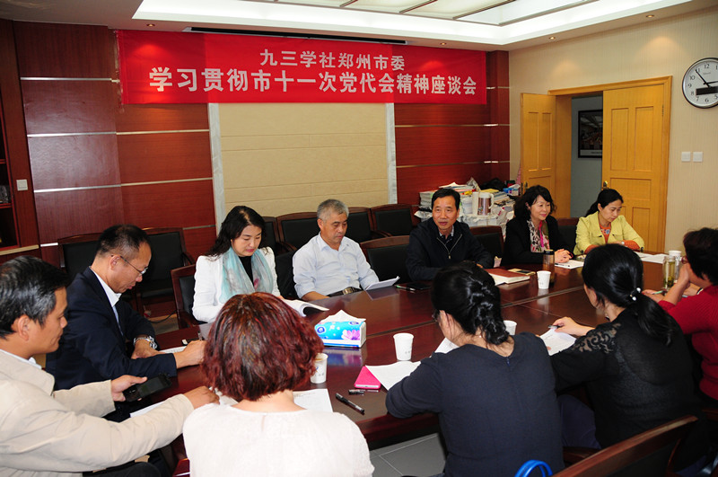 10月18日下午,九三學(xué)社鄭州市委學(xué)習(xí)貫徹市十一次黨代會精神座談會在市政協(xié)六樓會議室召開,社市委委員及基層組織負責(zé)人參加會議。會議由社市委副主委兼秘書長鄭高飛主持。