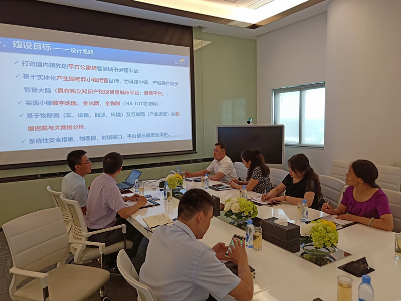 調(diào)研組一行實(shí)地了解了潼湖科技小鎮(zhèn)規(guī)劃建設(shè)情況,并召開了調(diào)研座談會(huì)。座談中,潼湖科技小鎮(zhèn)發(fā)展事業(yè)部項(xiàng)目負(fù)責(zé)人陳新勝、信息管理中心項(xiàng)目管理總監(jiān)朱細(xì)龍分別介紹了潼湖小鎮(zhèn)智慧城市規(guī)劃建設(shè)和發(fā)展情況,并就調(diào)研組提出的問題進(jìn)行詳細(xì)解答。