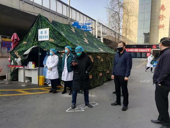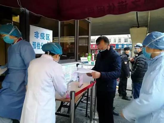 黃萬新帶領(lǐng)醫(yī)務(wù)科、疾病預(yù)防控制科和醫(yī)學(xué)裝備科人員實(shí)地走訪院內(nèi),發(fā)現(xiàn)并加強(qiáng)完善防控疏漏環(huán)節(jié)。為嚴(yán)格把控好“病人進(jìn)入醫(yī)院第一關(guān)”,醫(yī)院新型冠狀病毒疫情領(lǐng)導(dǎo)小組經(jīng)常組織此類走訪、檢查,不定期召開多科室、多部門傳染病防控工作會議,部署傳染病防控工作。